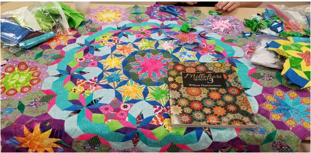 Every class member was given a set of directions so they can finish the star at home. Attached to this article is a photo of the reference book Millefiori Quilts by Willyne Hammerstein. Newbies should use the book labelled 1.